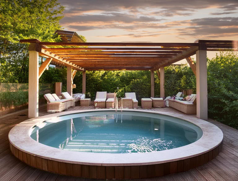 Create a private oasis with our elegant pergola designed for jacuzzi areas.
